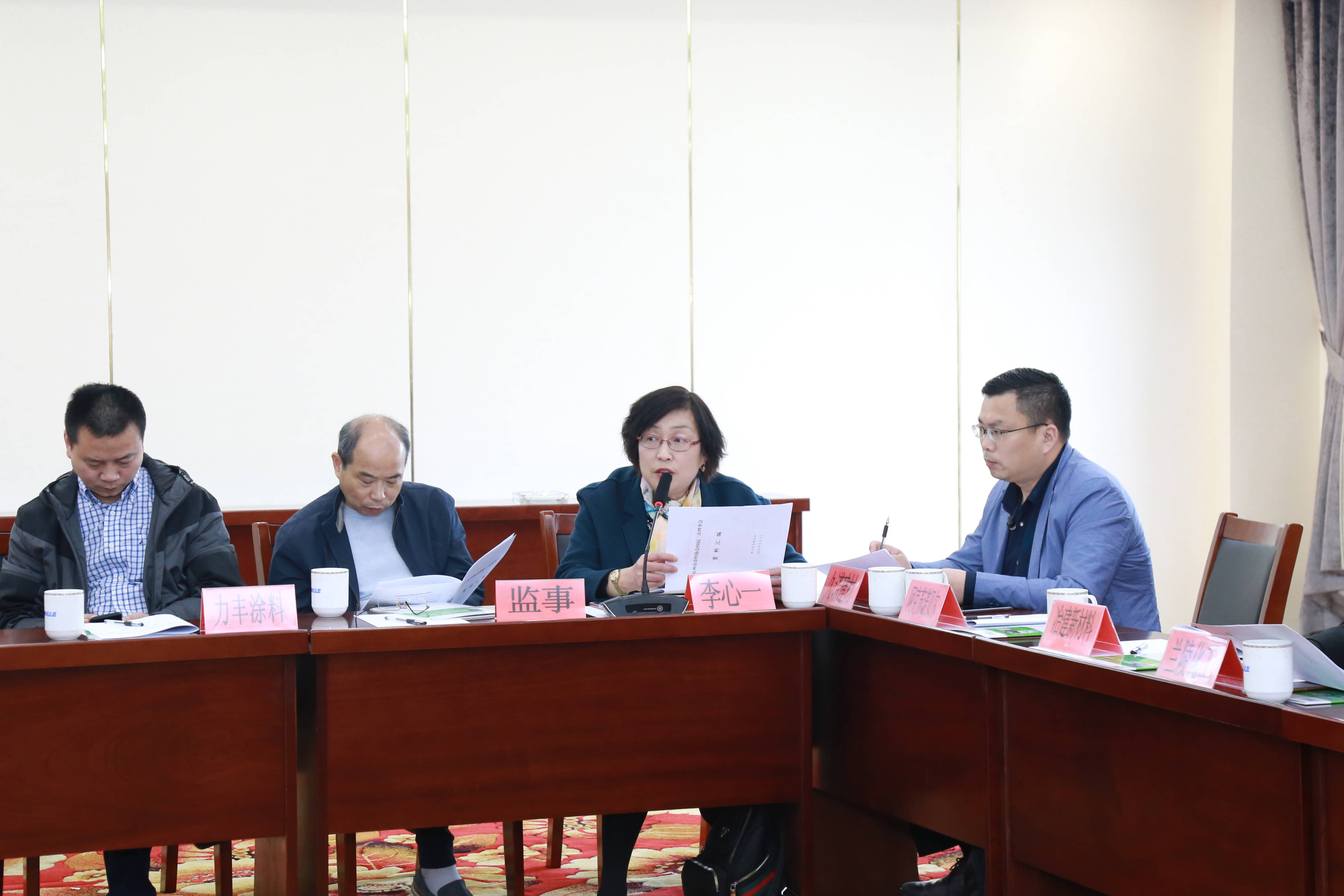 隨后,常州市涂料協(xié)會秘書長呂映女士宣讀了此次會議議程,并由常州市涂料協(xié)會副秘書長李心一女士副詳細(xì)闡述了需審議的各項議案:《2019年度常州市涂料協(xié)會工作計劃草案 》、《2019北京化工大學(xué)先進(jìn)材料科技成果對接會》方案、《第17屆環(huán)保車用涂料與涂裝年會(2019)》方案、《組織企業(yè)赴外地化工園區(qū)考察》議案、《組織企業(yè)赴浙江考察交流活動》議案、《經(jīng)濟(jì)形勢研判及創(chuàng)新金融模式-沙龍》議案、《組團(tuán)參觀“第二十四屆中國國際涂料、油墨及粘合劑展覽會”》議案、《關(guān)于會長與理事變更的申請》。同時,李心一女士對各個活動方案進(jìn)行了詳實的分析與實施計劃的部署。此次會議是參會理事單位一個交流經(jīng)驗、展示成果、共謀發(fā)展的平臺,常州市涂料協(xié)會秘書長呂映女士鼓勵各理事單位積極參與并支持。