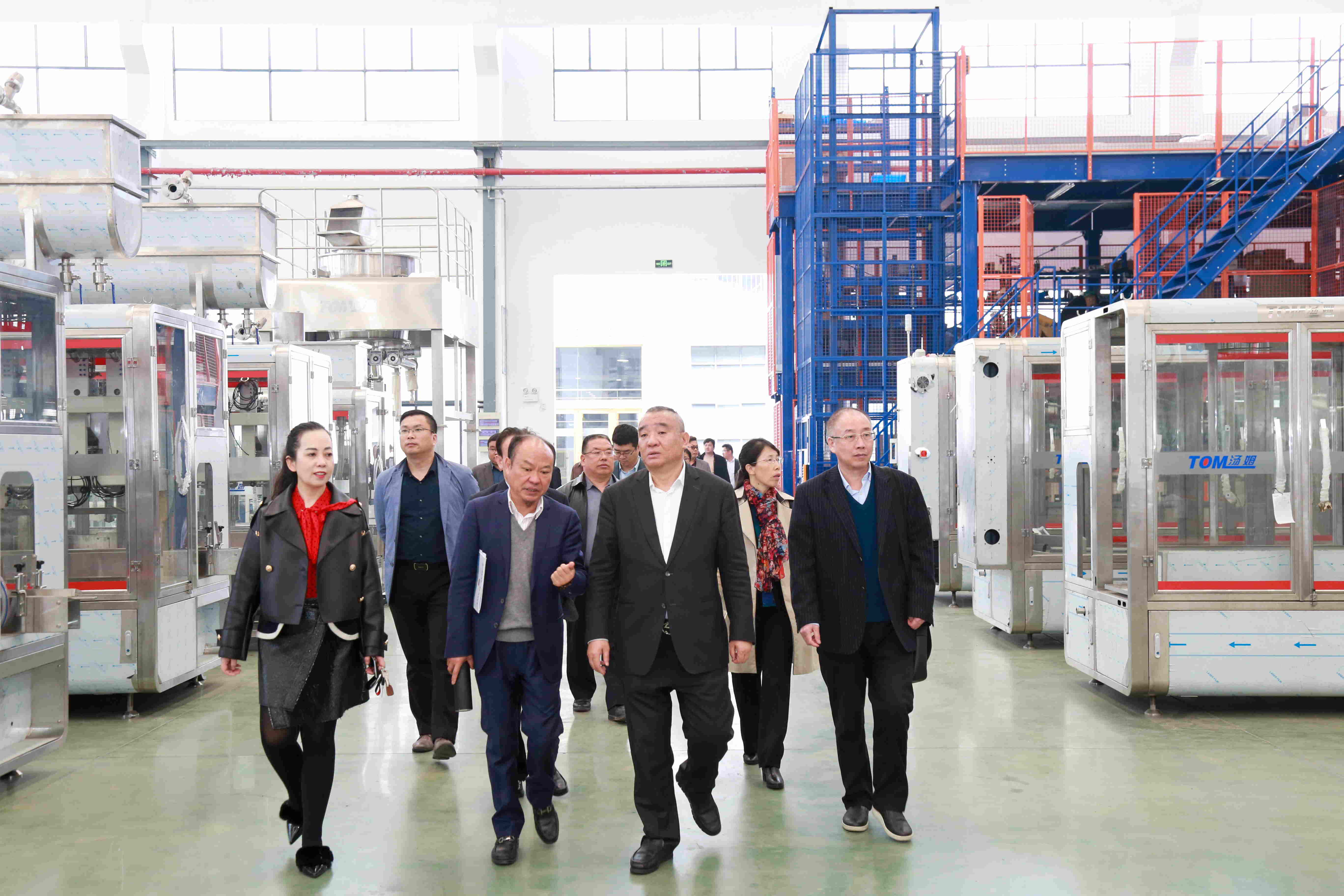 會議結(jié)束后,江蘇湯姆集團(tuán)董事長湯建華先生、江蘇湯姆森智能裝備有限公司總經(jīng)理王芳熱情地邀請了與會代表參觀了公司的生產(chǎn)車間與展館。在集團(tuán)董事長湯建華先生、江蘇湯姆森智能裝備有限公司總經(jīng)理王芳女士、副總裁湯建定先生及涂料事業(yè)部總經(jīng)理汪亮亮先生的陪同講解下,與會代表們了解了江蘇湯姆的建立、起步、發(fā)展壯大的建設(shè)歷程,紛紛感嘆于江蘇湯姆集團(tuán)的發(fā)展速度!
