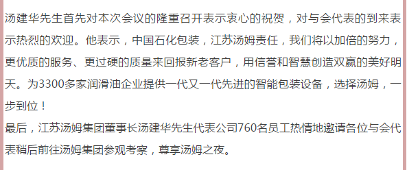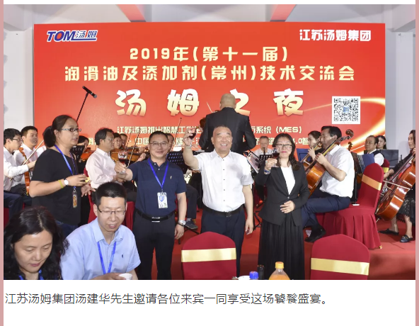 江蘇湯姆集團熱烈祝賀2019年(第十一屆)潤滑油及添加劑(常州)技術交流會隆重召開。湯姆之夜,群情激昂