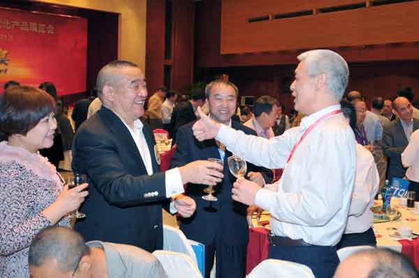 湯建華、湯建定與中國農藥工業協會會長孫叔寶在一起