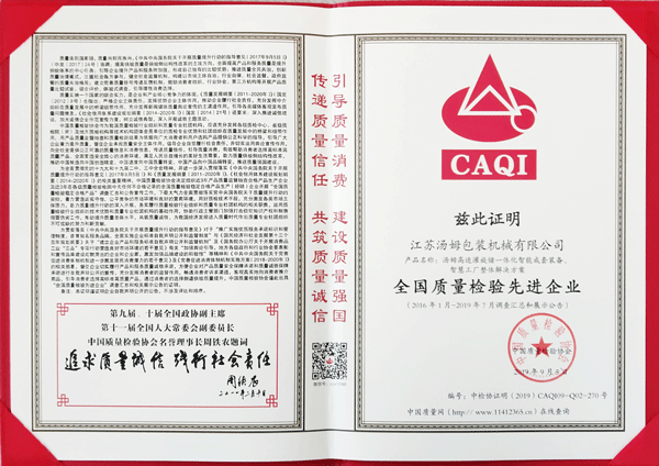 全國包裝機(jī)械行業(yè)質(zhì)量領(lǐng)先企業(yè)