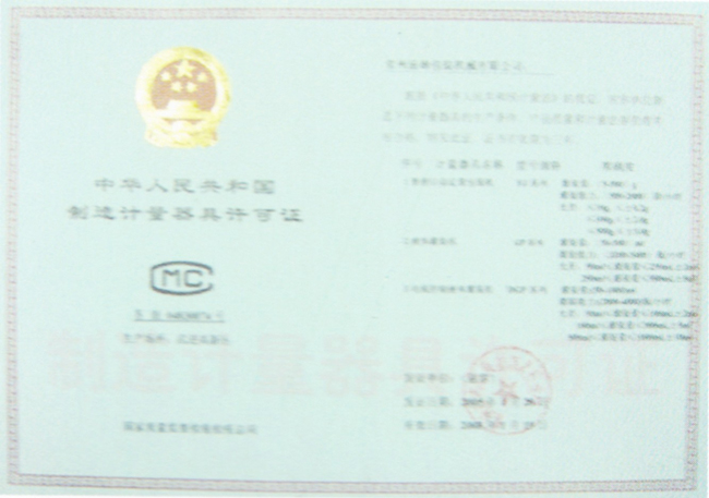 計(jì)量標(biāo)準(zhǔn)考核證書(shū)