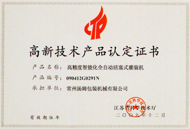 高新技術(shù)產(chǎn)品認(rèn)定證書(shū)