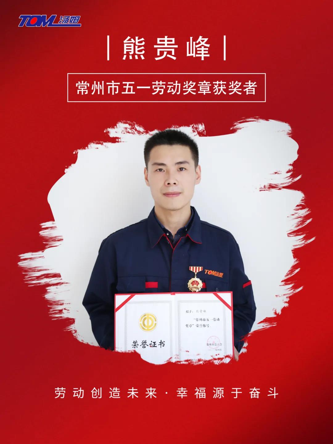 喜訊!湯姆集團熊貴峰榮獲“常州市五一勞動獎章”!
