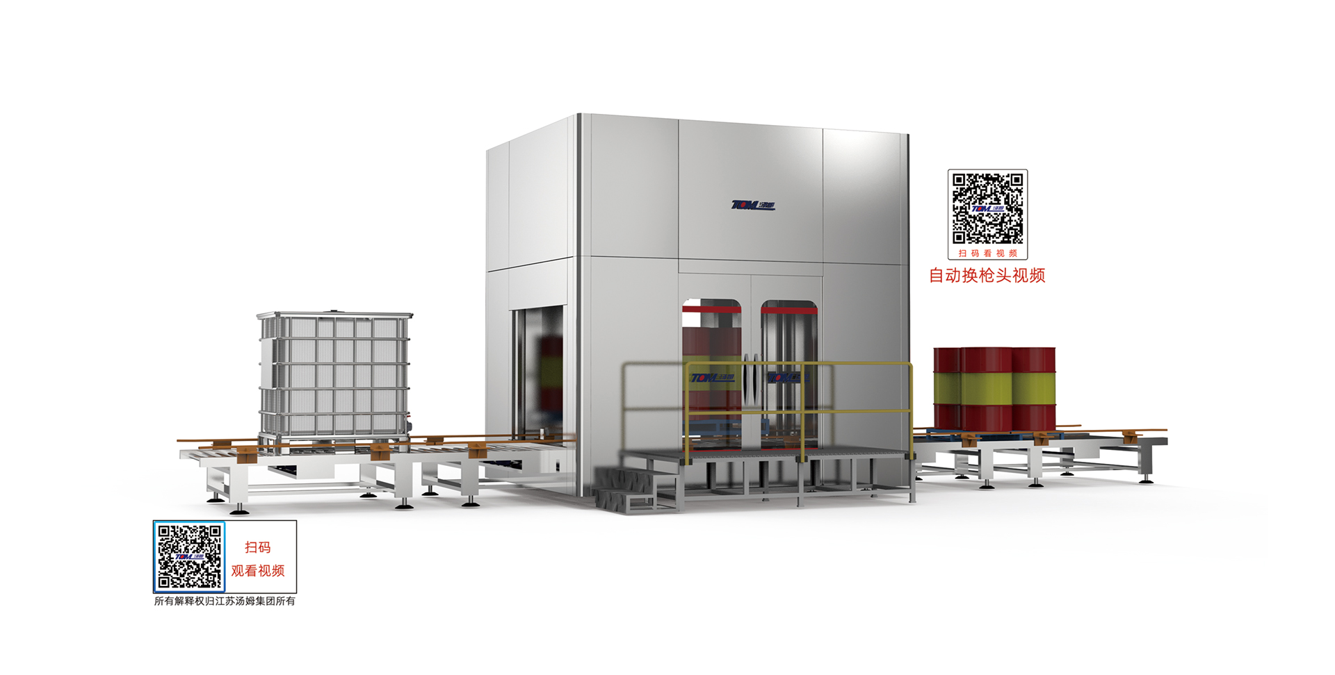 1、本線適用于農藥、化工等各類液體200L桶、噸桶包裝規格產品灌裝。